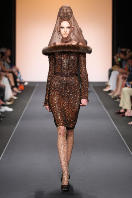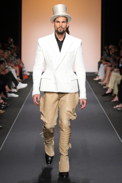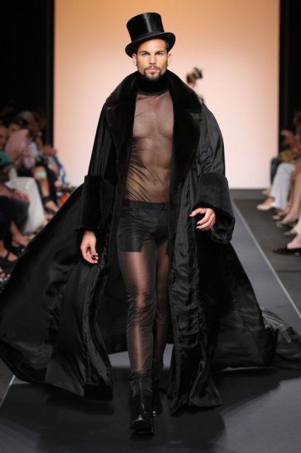 La collezione, presentata nella raccolta sala Baglivi del complesso monumentale di S.Spirito in Sassia, ha visto sfilare i modelli couture appena visti qualche giorno prima sulla catwalk di Gaultier in occasione della Paris fashion week, insieme ad altri d’archivio, come bustier importanti,( suo veri must) abiti da sera “so shining”(incredibili le velette ornate di zibellino) e dei pezzi d’eccezione declinati al maschile; perchè come dichiara lo stesso couturier in conferenza stampa: