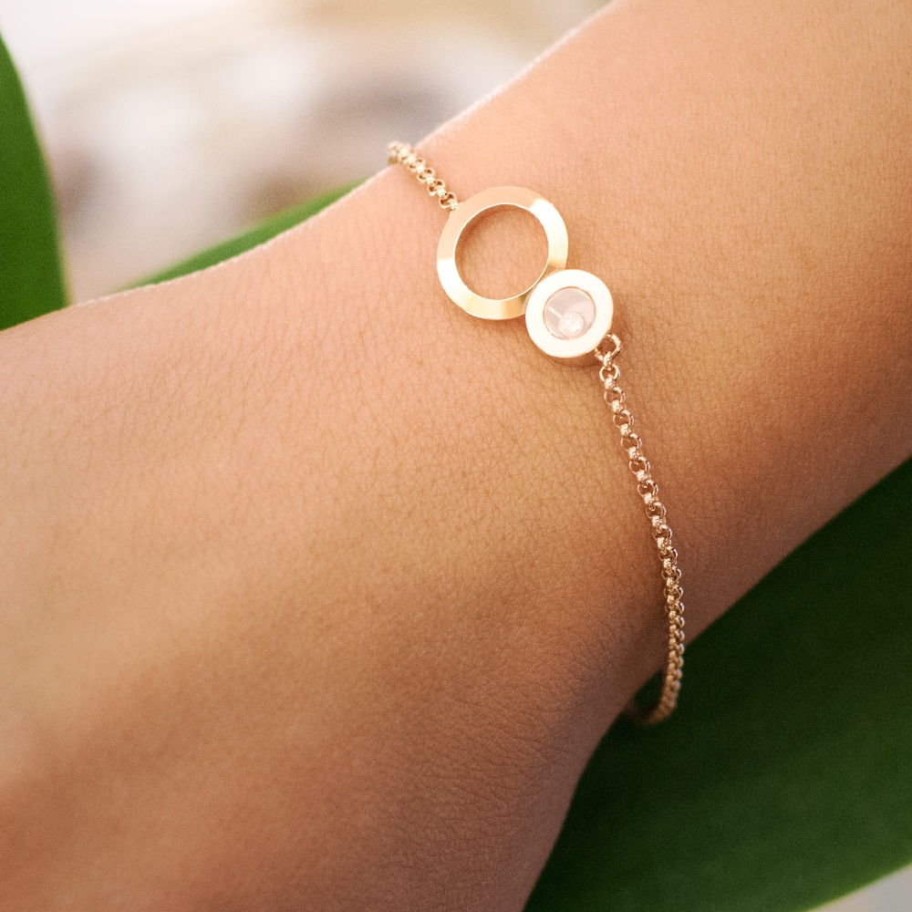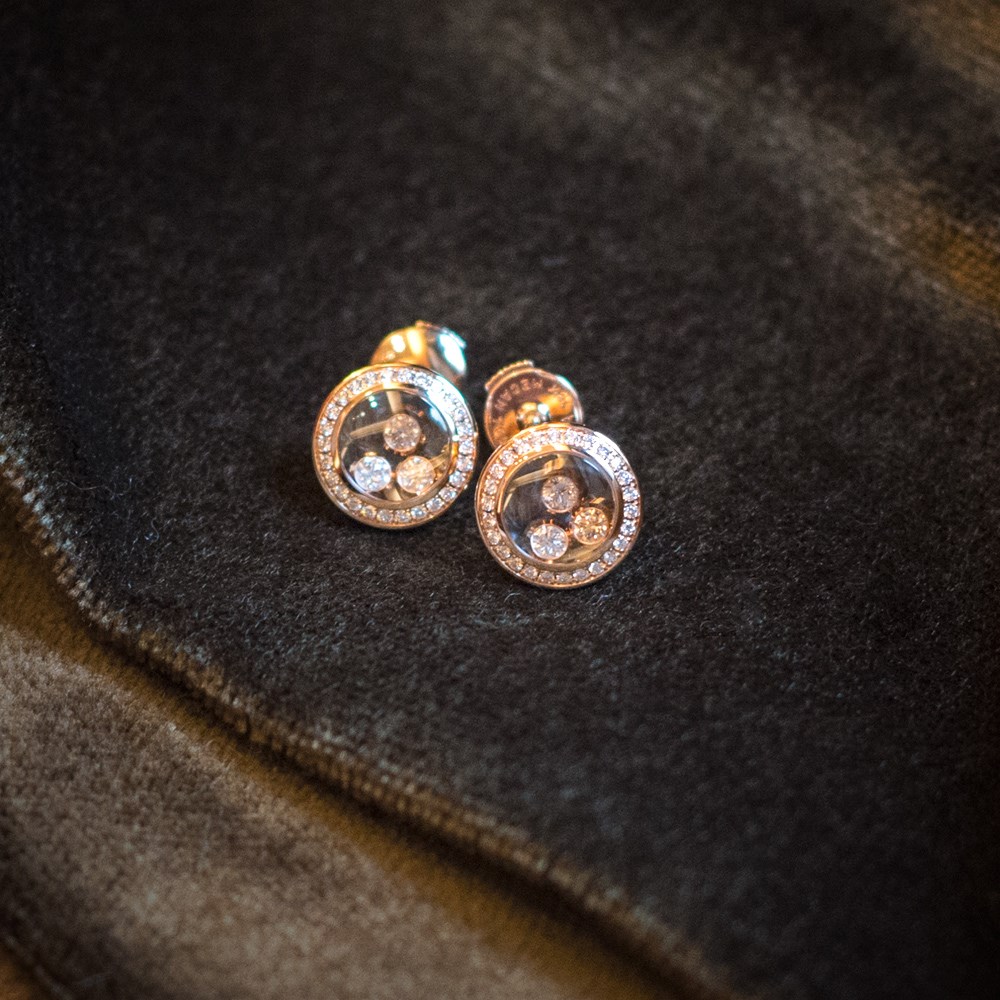 “Happy diamonds” è la linea di gioielli di Chopard che unisce ad una ricerca estetica strabiliante una raffinatezza di incastonatura e montaggio davvero unici. I gioielli che compongono questa collezione infatti, sono caratterizzati da diamanti taglio brillante che sembrano come  sospesi, poiché in realtà mobili e fluttuanti all’interno di un doppio vetro zaffiro che ne assicura la perfetta protezione.