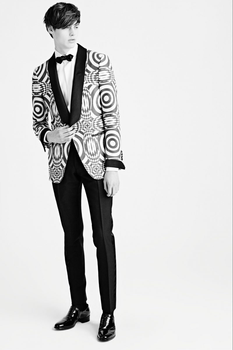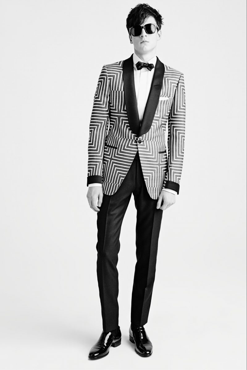 Grande lavoro per Ford anche sulle giacche da sera, che sono state questa volta lavorate con sofisticate grafiche optical in bianco/nero e che creano dinamicità a uno dei completi più conosciuti di un uomo: il tuxedo.