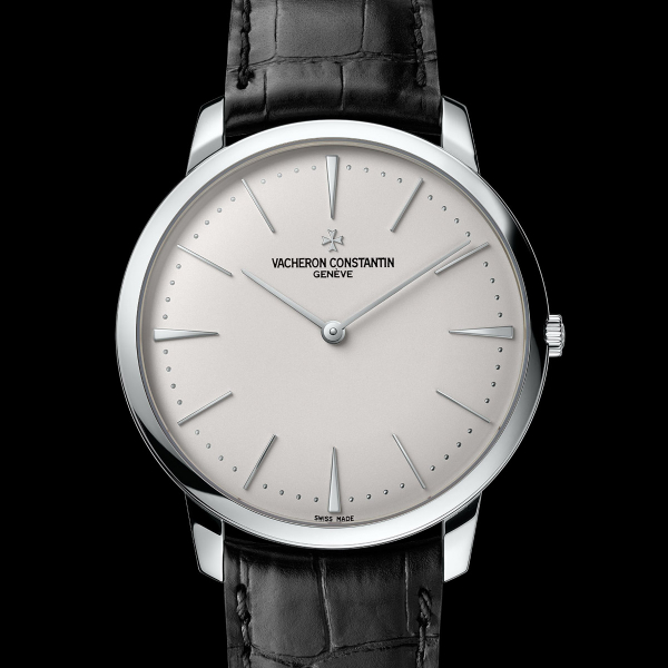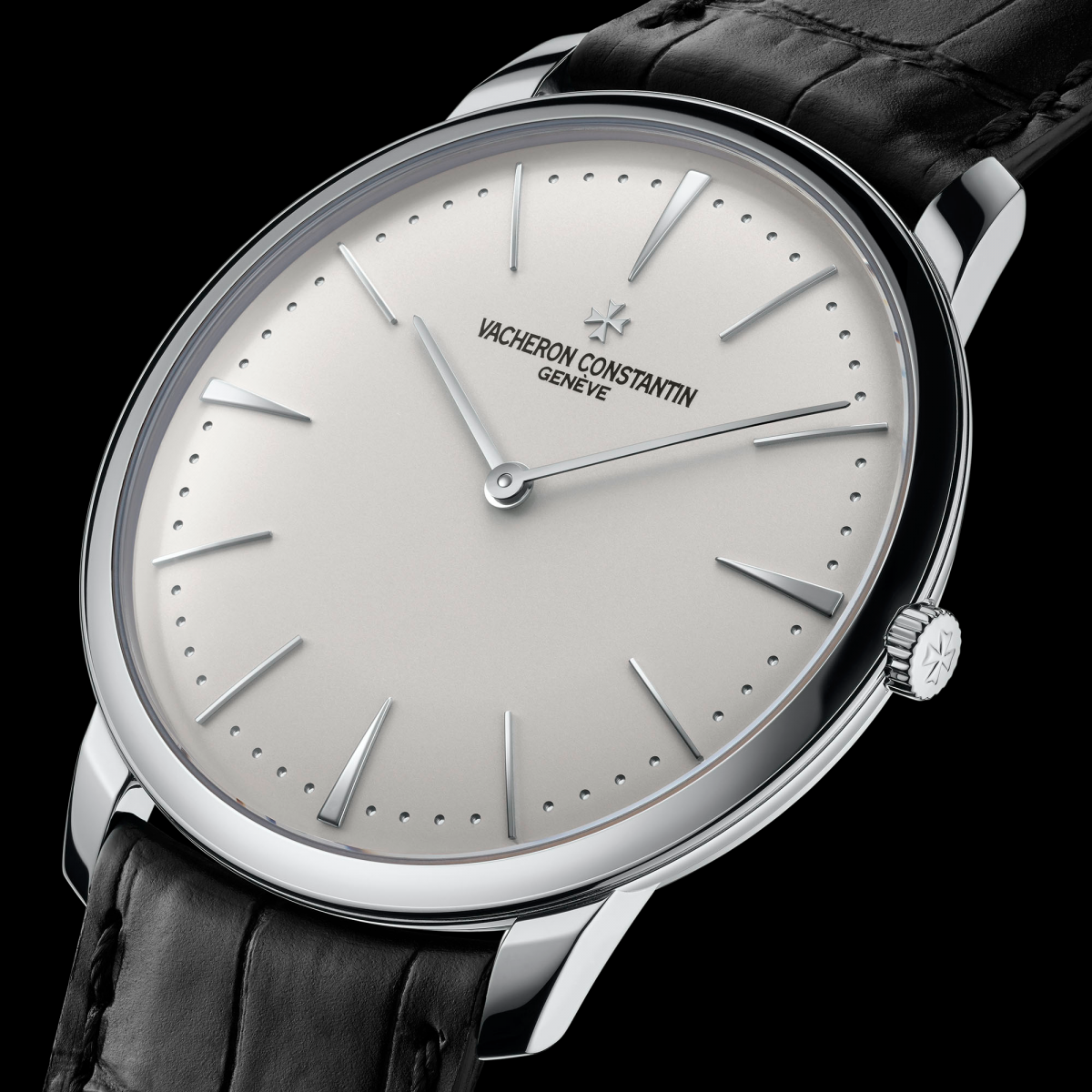La cassa, nel modello che vi stiamo presentando, è realizzata in oro bianco 18k con uno spessore veramente minimo (solo 6.8 mm), all’interno della quale pulsa un movimento anch’esso tra i più sottili di sempre. Parliamo del pregiatissimo calibro VC 1400 certificato dal prestigioso Punzone di Ginevra, che rappresenta uno dei maggiori riconoscimenti per quanto riguarda l’alta orologeria Svizzera. Il segnatempo si completa con uno splendido cinturino in alligatore del Mississippi in colore nero con chiusura ad ardiglione e fibbia sempre in oro bianco.