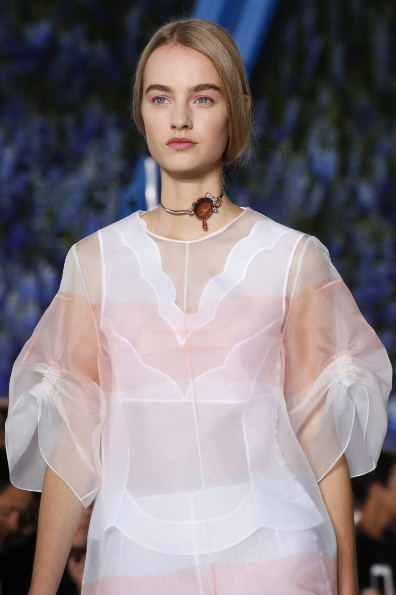 Dior conserva, pur in una visione nuova, il suo carattere di classicità in un incontro ottimale tra lo stile di Raf Simons e quello di Monsieur Christian Dior dove si alternano toni maschili e femminili, romanticismo e rigore militare che si esprime con abiti lunghi e fluenti, gonne corte, lunghe e asimmetriche, abiti lineari con maniche a palloncino, abiti camicia da indossare con lunghe giacche nelle tonalità del bianco, nero, marrone, rosa, albicocca e corallo;