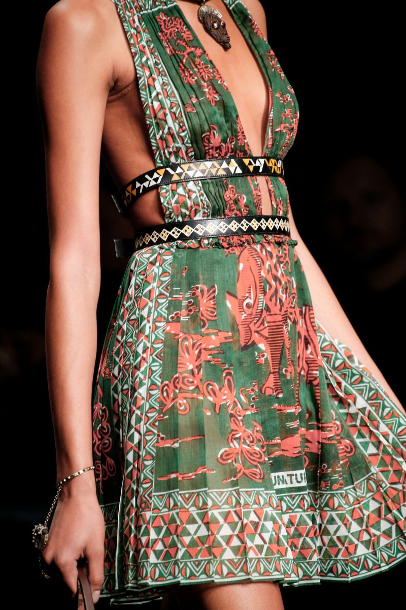 Valentino, con la sua capacità di impressionare e affascinare in ogni tempo, presenta una collezione ispirata al mondo Africano, rivisitato dai due designer Maria Grazia Chiuri e Pier Paolo Piccioli in una pura visione privata dei vecchi schemi etnici sensazionalistici al fine di dare un’impronta che si incunea tra sogno e realtà, presente e passato: nascono allora abiti dai tessuti stampati e dai colori decisi quali il nero, il rosso e marrone raffiguranti gazzelle, leoni e tigri. Frange su giacche in pelle istoriate, piume Masai che impreziosiscono tuniche in pelle mentre lunghi abiti dai fascinosi drappeggi richiamano l’inalterabile fascino di questo maestro della moda.