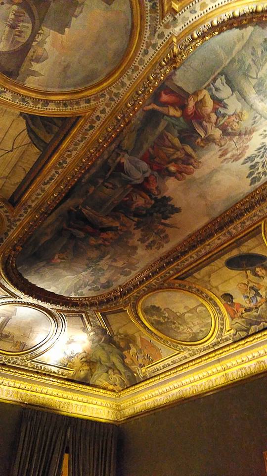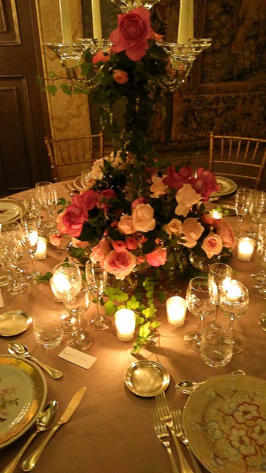 Bouquet di rose e peonie avvolgono qui candelabri di cristallo le cui calde ed avvolgenti luci impreziosiscono l’ atmosfera della notte, il tutto raccolto in una scatola architettonica ricolma di affreschi e quadri in cui note di musica classica riecheggiano nell’aria.