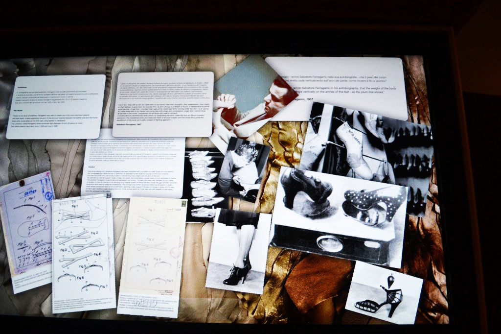 Uno schermo touch screen fa rivivere ai visitatori la magica storia di Salvatore Ferragamo. |