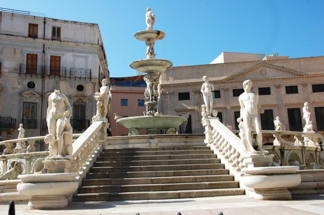 Piazza Pretoria, with its famous nudes fountain, it’s one of my great loves here in Palermo.