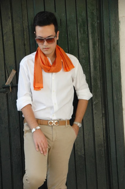 Look semplice ma impeccabile, l’arancio è un colore che ti sta molto bene.