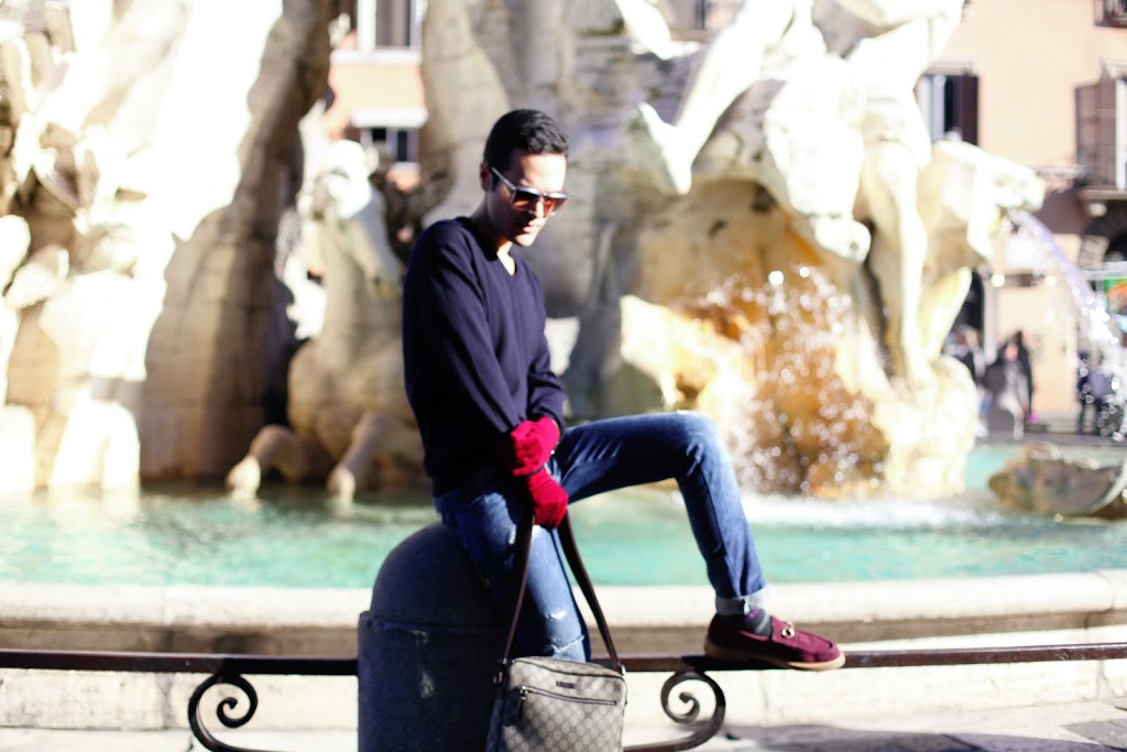 Tuesday morning Navona square was the perfect location for a simple shooting with an essential look.