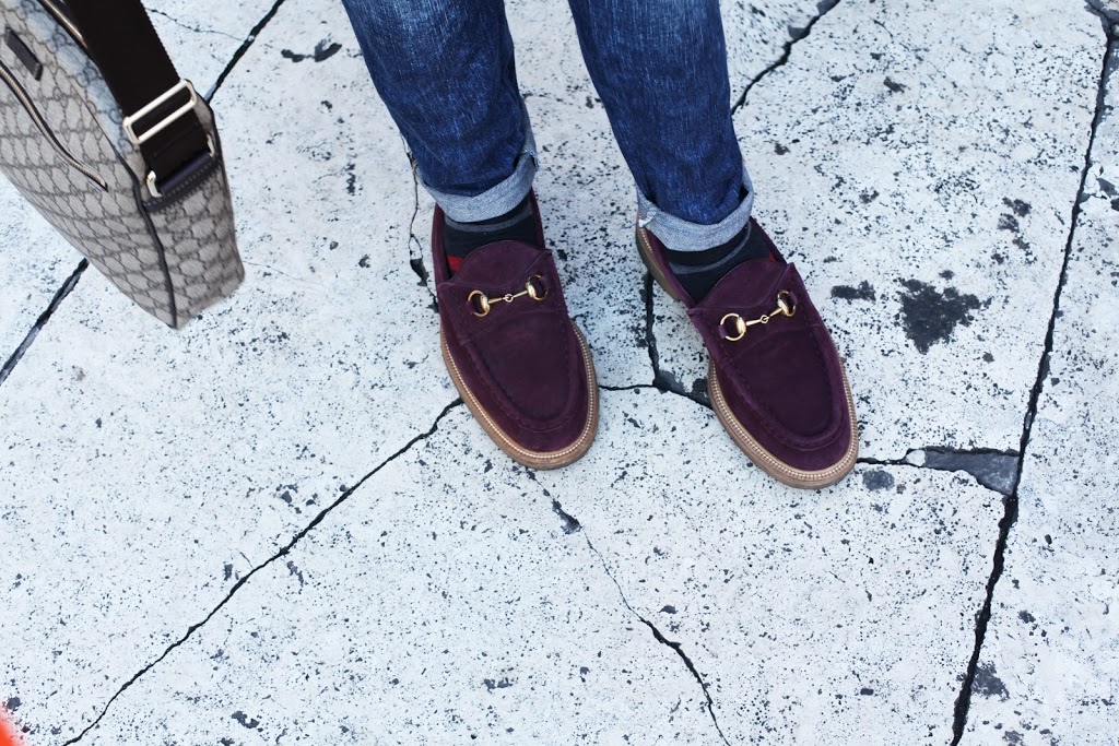 Da molto tempo non indossavo il monogramma. E’ stato divertente reinventarlo con questi mocassini carro armato della scorsa collezione sfilata di Gucci.