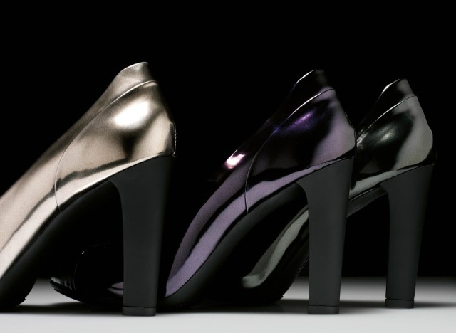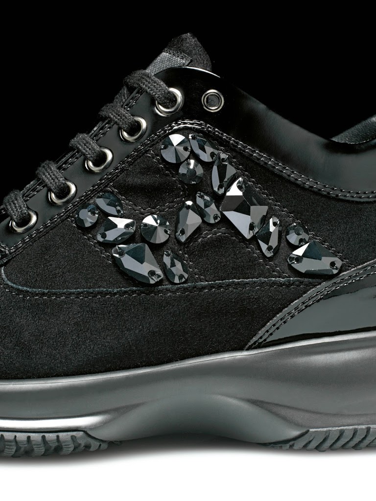 Per questa collezione autunno inverno 2013/2014 Hogan sceglie l’effetto “very shining” per le proposte calzaturiere pensate per lei e per lui. Giovani e comode, le sneakers maschili sono create in vitello spazzolato con decori a nido di rondine o semplici ma con un’alta base in gomma che tende a sdrammatizzarle; per lei invece pietre,swarovski e strass sono il vero “must”, per ricoprire pochette total black o il classico modello interactive che viene così rivisitato in una chiave (forse) più casual chic. Alte poi le decoltèe con grande tacco e nessun plateau, in pelle di capretto lucida nei colori della stagione.(Tutte si chiederanno: saranno comode?)
