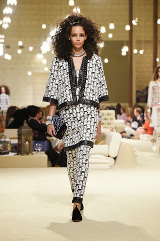 Ed è così che lunghi abiti in chiffon di seta ripropongono le fantasie e decorazione tipiche della Spagna ai tempi delle dominazioni Arabe, o le proporzioni e lunghezze rimbrano quell’austerità imposta alle donne dell’ High middle class se pur mantengono l’allure Chanel.