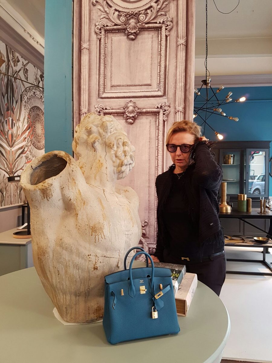 So here is the desire for a little ‘color, wearing a witty Hermès Birkin 25, blue with gold closures, which contrasts with the delicate landscape of the lake and makes it immediately more euphoric. And if you tied a fascinating Mantero scarves, a note printing of Como, you are really ready for a thrilling jet boat ride, if it is a Riva Acquarama, even better!